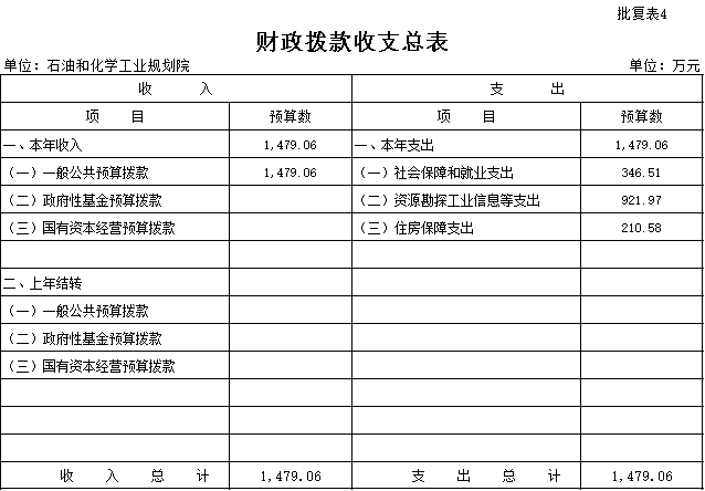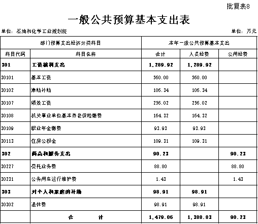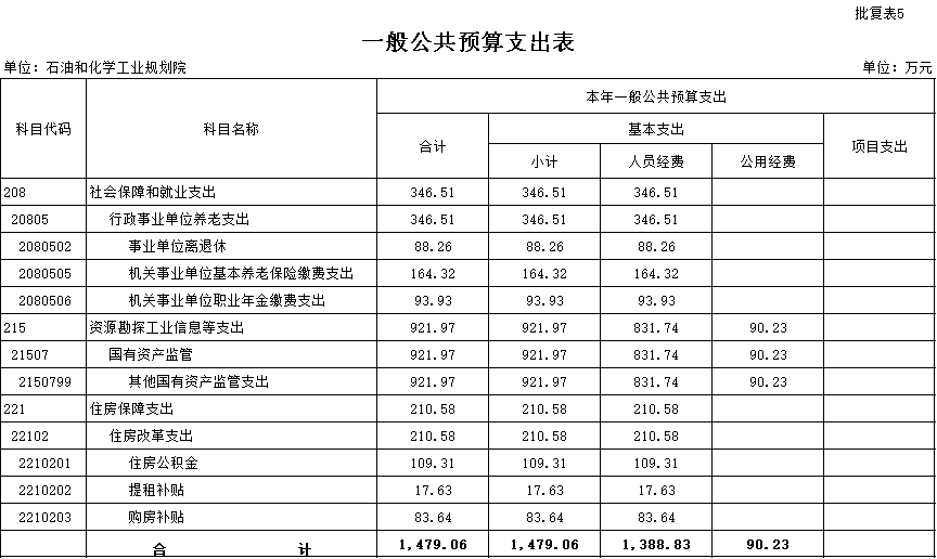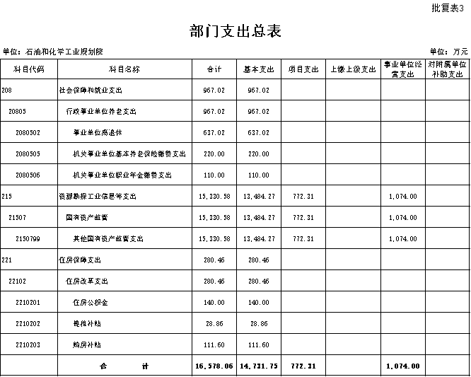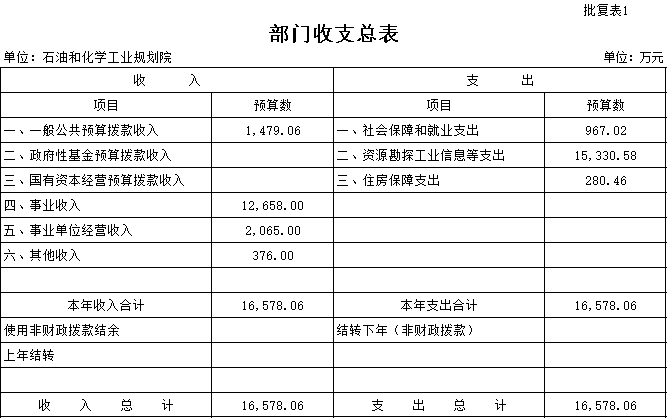 石油和化学工业规划院部门预算
