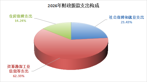 2026年一般公共预算支出1479.06万元,其中:行政事业单位养老支出346.51万元,包括:事业单位离退休88.26万元;机关事业单位基本养老保险缴费支出164.32万元;机关事业单位职业年金缴费支出93.93万元;资源勘探工业信息等支出921.97万元,为其他国有资产监管支出;住房保障支出210.58万元,包括:住房公积金109.31万元,提租补贴17.63万元,购房补贴83.64万元。
